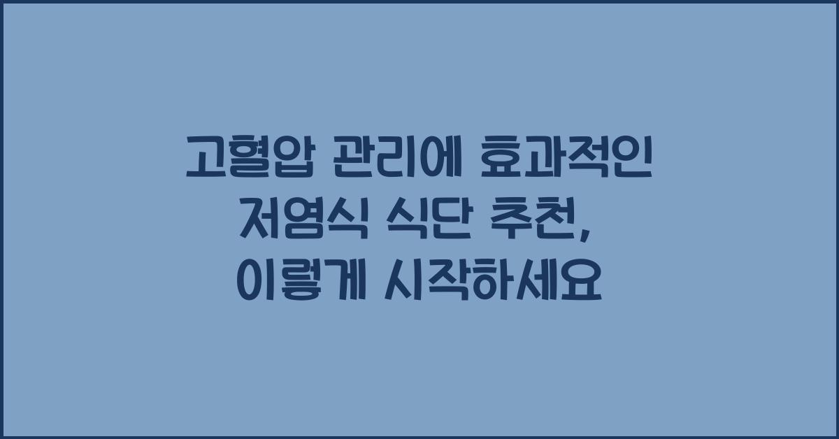 저염식이란 무엇인가?고혈압 관리에 효과적인 저염식 식단 추천을 이야기하기 전에, 저염식이란 무엇인지에 대한 이해가 필요합니다. 저염식은 나트륨 섭취를 감소시키는 식이요법으로, 주로 소금 및 나트륨이 많은 음식을 피하고 대신 여러 가지 건강한 재료로 대체하는 것을 의미합니다. 이러한 식단은 고혈압을 앓고 있는 사람들에게 특히 중요한데, 나트륨 섭취가 많으면 혈압이 상승하기 때문입니다. 그런 의미에서 저염식은 건강한 혈압 유지 및 심혈관계 질환 예방에 필수적이라고 할 수 있습니다.그렇다면, 저염식 식단을 어떻게 구성해야 할까요? 많은 사람들이 ‘소금을 줄이는 것은 정말 힘든 일’이라고 생각하지만, 실제로는 건강한 재료들로 맛있고 다양한 요리를 즐길 수 있습니다. 최근 연구에 따르면, 저염식 식단이 혈압 조절..